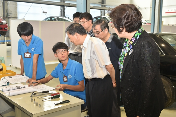 国家调研组一行在李春明校长、王晓平副校长、明晓辉副校长的陪同下考察了我校奥迪长春培训基地、一汽丰田销售顾问培训基地、汽车综合实训楼、工业机器人技术应用中心、焊接实训基地和米其林工程训练中心。分别走进了奥迪班维修车间的综合故障诊断工位与汽车装调的内饰工位及机器人培训课堂,与正在上课的师生亲切交谈,详细了解了培训基地的项目合作与教学运行情况,对我校“校企融合、教培一体”的办学特色给予了充分肯定。