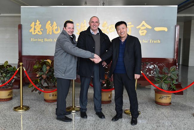 4月8日上午,我校迎来一位新的国际友人。德国奥迪股份公司全球培训继续教育负责人海德先生与新任大众汽车集团(中国)职业教育负责人托马斯•帕帕里尼先生来我校进行交流访问。