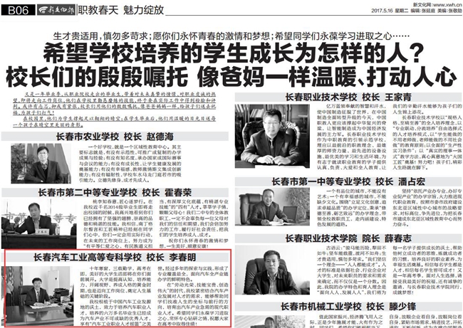在“劳动光荣、技能宝贵、创造伟大”的时代,我校紧密结合汽车产业发展对人才的需求,能够帮助同学们找准人生的坐标与前行的方向,培育出汽车产业急需的现代职业人才。希望同学们永葆学习进取之心,常怀专心钻研之情,祝愿大家在高考中取得佳绩!