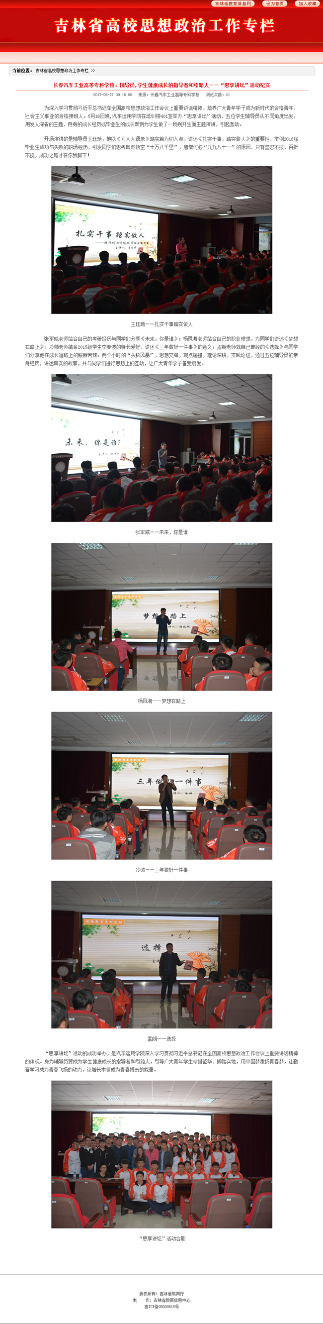 吉林省高校思想政治工作专栏——长春汽车工业高等专科学校:辅导员,学生健康成长的指导者和引路人——“思享讲坛”活动纪实