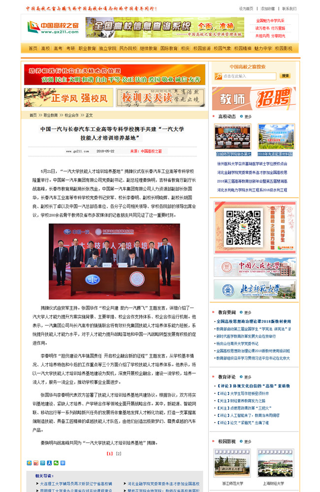 (2018年5月22日摘自中国高教之窗职业教育专栏校企合作栏目)