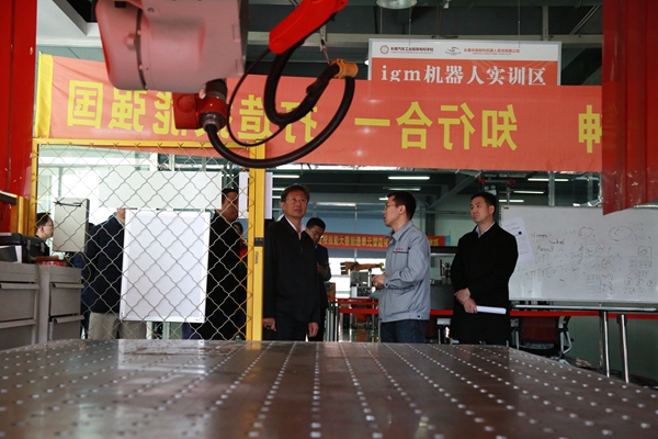 调研组在学校党委书记安军、副校长丁卓及相关部门负责人陪同下,考察了我校汽车造型实训中心、新能源汽车技术实训中心、汽车改装技术实训中心、捷豹路虎长春卓越培训中心和工业机器人技术中心等实习实训基地。考察过程中,调研组成员详细了解了各实训中心的项目合作与教学运行情况,并与师生们亲切交谈,对我校“校企融合、教培一体”的办学特色给予了高度评价。