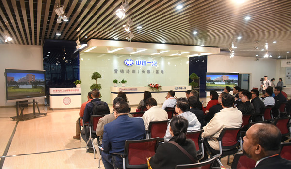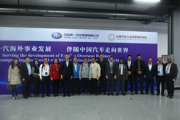 芳菲四月,春暖花开。4月19日下午,来自孟加拉、缅甸、菲律宾、泰国等8个国家和地区的28名中国第一汽车集团海外经销商代表,在一汽进出口有限公司高级经理冷长春、出口室主任庞永吉的陪同下,来到长春汽车工业高等专科学校进行考察交流。学校党委书记安军,校长李春明,副校长明晓辉、胡国良、丁卓热情接待了代表团一行,并陪同参观考察。