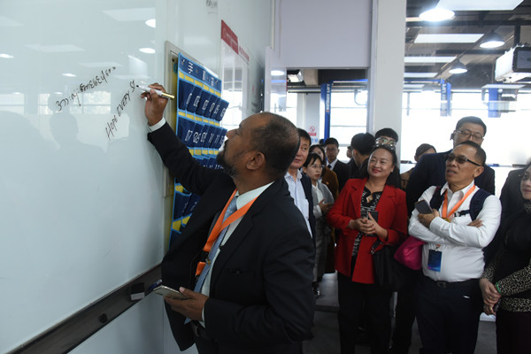 此次考察交流活动,是中国第一汽车集团2019年海外经销商年会的一个重要内容。代表团一行先后考察了学校捷豹路虎卓越培训基地、自主品牌汽车人才培训基地和大学生创新创业作品展厅,代表们对学校的办学实力赞不绝口,纷纷表达了与学校开展合作的意愿。