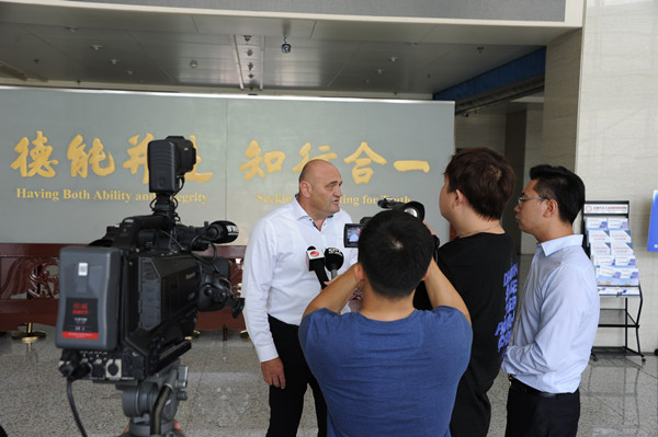 李春明校长接受电视台采访