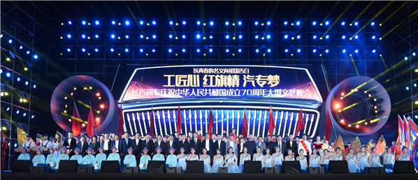 “以青春的名义向祖国告白!” 9月29日晚,我校隆重举行庆祝中华人民共和国成立70周年大型文艺晚会,向新中国70华诞献礼。吉林省教育厅巡视员、副厅长战高峰,长春市教育局副局长张茂金,共青团长春市委副书记杨金玉,中国一汽集团人力资源部副部长张国华,中国一汽集团工会副主席姬小明,中国工商银行吉林省分行副行长孙占国等来自吉林省教育厅、长春市教育局、长春市委市政府、市政协、一汽集团、赞助企业、在长6所高职院校等各级部门的有关领导、嘉宾及学校全体班子成员出席晚会。学校全体教职工、全体在校学生以及来自全国各地的近300名校友代表共6000余人共同观看了本场晚会。吉林日报彩练新闻APP、学校微信公众号对晚会进行了全程现场直播,线上同期收看观众近3万人次。