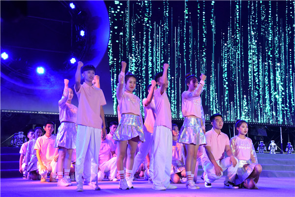 汽车营销学院、电气工程学院学生共同表演舞蹈《我们都是追梦人》
