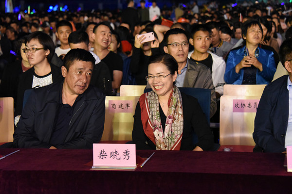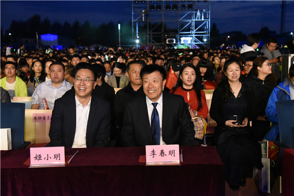 我校李春明校长与中国一汽集团工会副主席姬小明在晚会现场观看演出