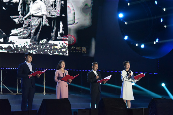我校校友93届毕业生张涛、青年教师马海艳、2017级学生王琦、2018级学生刘薇担任本次晚会主持