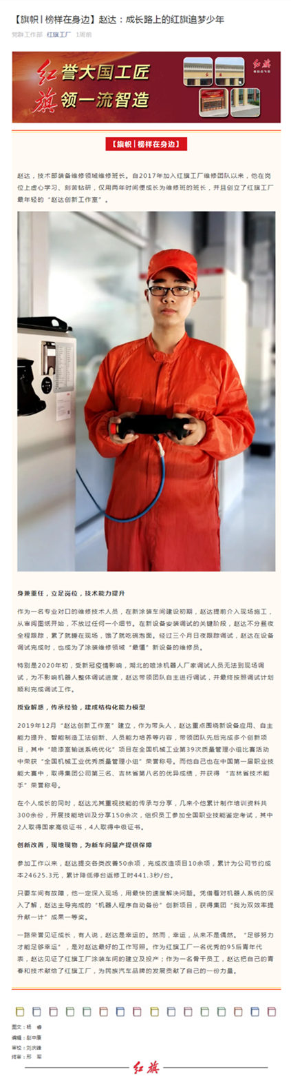 红旗工厂——【旗帜|榜样在身边】赵达:成长路上的红旗追梦少年