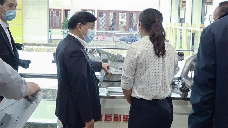 韩俊先后来到4S店高端智能服务机器人、铝合金副车架电弧焊焊接制造技术展品展示台,听取了学校关于本次参展成果、学校产教融合和创新创业等方面工作的汇报。他关切地询问了技术技能人才在职业院校任教的情况,肯定了学校在产教融合和创新创业方面的工作成绩,亲切勉励大家用创新凝聚力量,用创业放飞梦想,真正赛出水平、赛出境界、赛出成果、赛出信心,为吉林振兴发展作出更大贡献。
