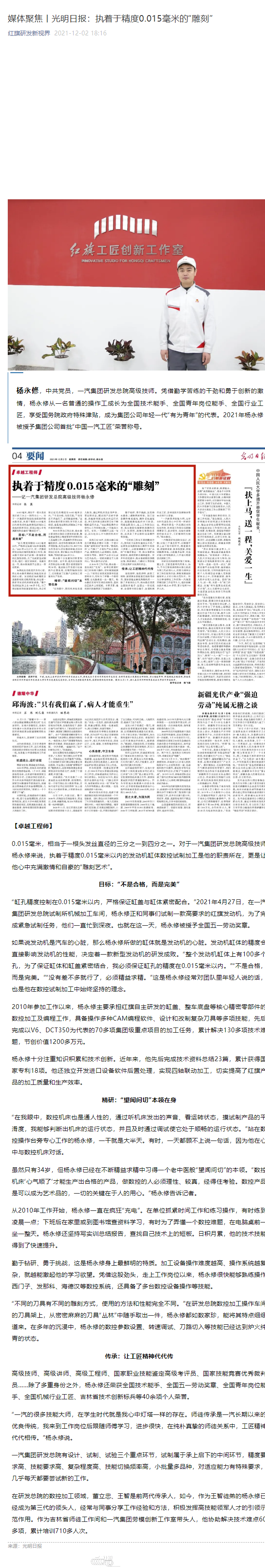 红旗研发新视界——媒体聚焦丨光明日报:执着于精度0.015毫米的“雕刻”