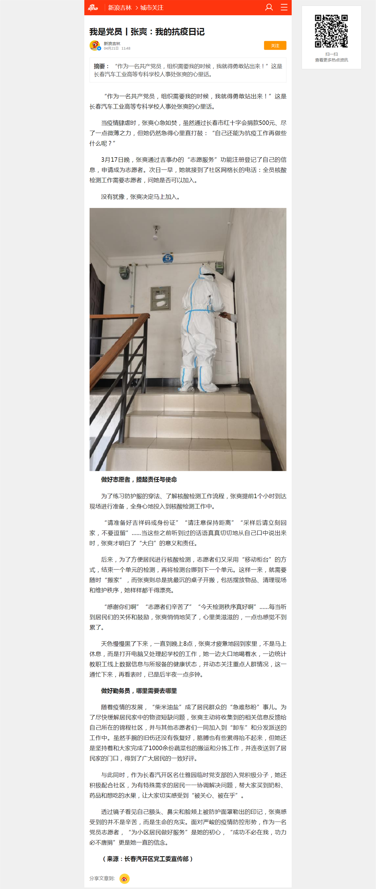 新浪吉林——我是党员丨张爽:我的抗疫日记