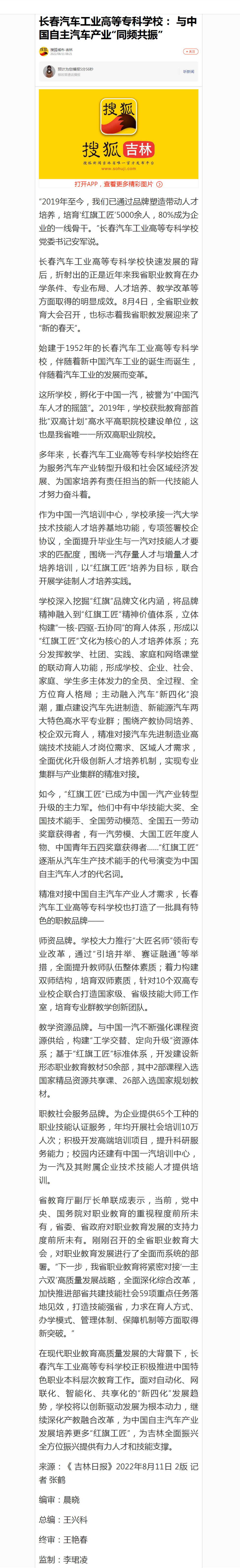 搜狐——长春汽车工业高等专科学校: 与中国自主汽车产业“同频共振”