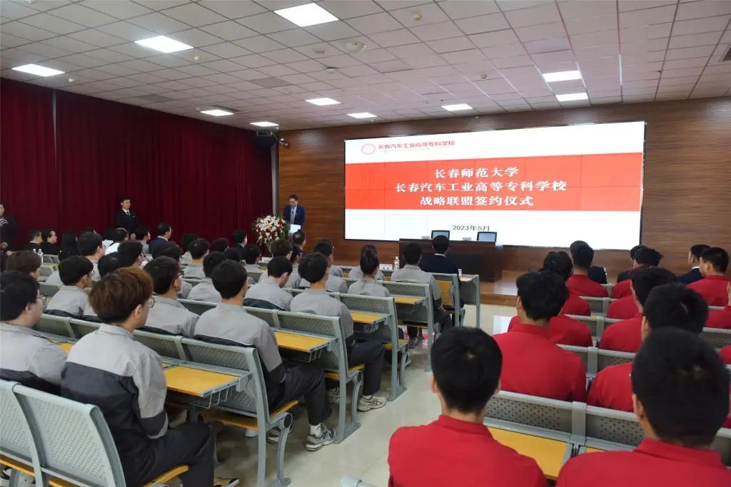 我校是全国唯一一所面向汽车全产业链办学的专科学校,致力于振兴民族汽车品牌,为中国汽车产业的高质量发展做出了积极贡献。长春师范大学历史悠久,在教师教育方面取得显著成就,建校以来为社会主义建设培养了十万余名基础教育师资及其他各类专门人才。协议签署后,双方将在人才培养、教学科研仪器设备资源共享公用、师资队伍建设和现代产业学院建设等方面全面建立战略合作关系,为推动我省的产业升级和转型提供有力的科技支持和人才储备。