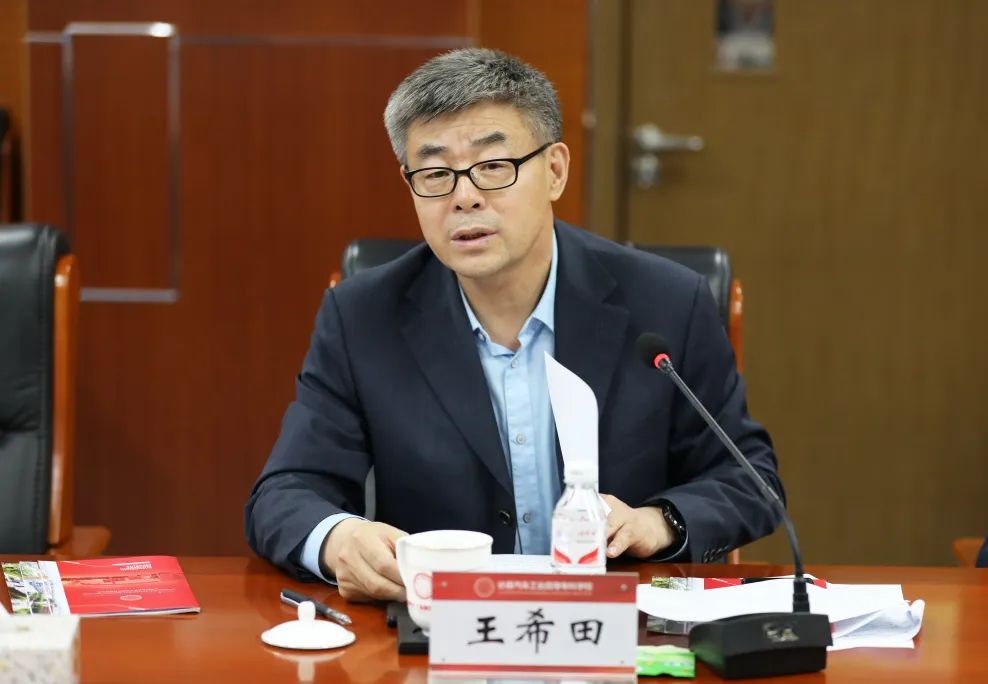 长春市政府一级巡视员王希田在致辞中对阜阳市各位领导的到来表示欢迎。王希田指出,长春是中国汽车工业的摇篮,拥有雄厚的汽车产业发展基础,长汽高专是全国唯一一所面向汽车全产业链办学的专科学校,为中国汽车产业的高质量发展做出了积极贡献。阜阳市近年来在装备制造和新能源汽车产业发展方面取得了十分亮眼的成绩,这与长春市的汽车工业发展战略不谋而合。希望两市之间密切合作,缔结友好情谊,在产业层面、科教层面取长补短,携手前进,共同谋划汽车产业发展的美好未来。