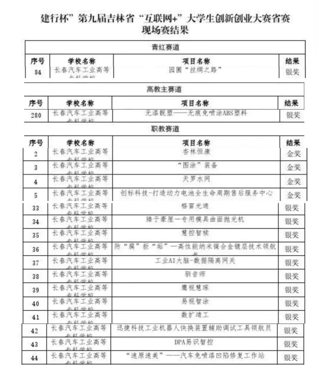 7月28日,第九届吉林省“互联网+”大学生创新创业大赛落下帷幕,我校共获得奖项54项,其中金奖4项,银奖14项,铜奖36项,获奖数量连续4年位居全省职业院校首位。