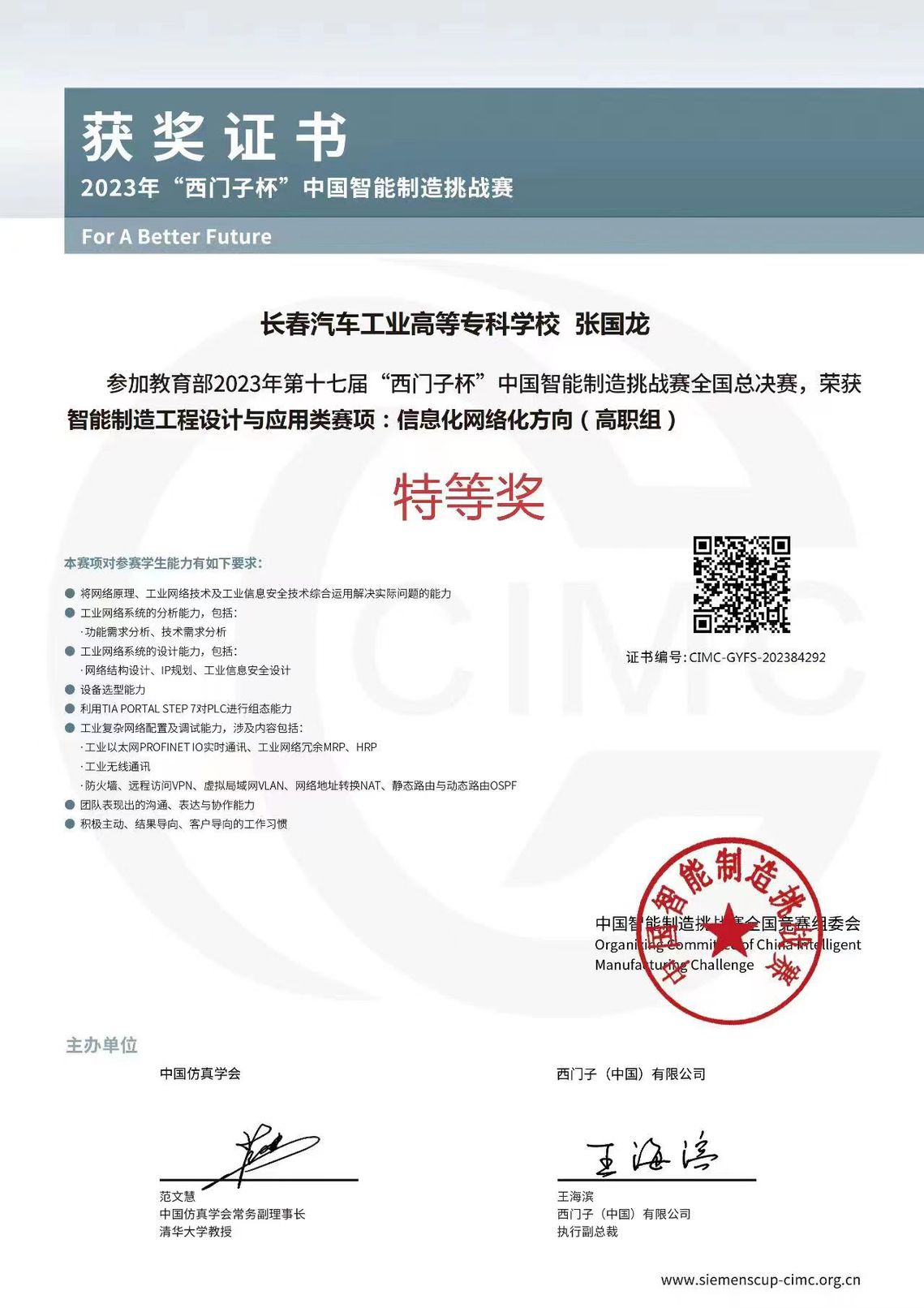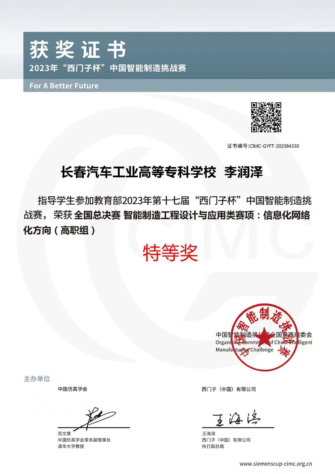 此次比赛,实现了我校在该赛事的历史性突破,也是历年来东三省地区的最好成绩。值得一提的是,“灵动队”在信息化网络化赛项中展现出了超凡的水平,以满分的优异成绩获得了全国第一名,这也是中国智能制造挑战赛“西门子杯”创办17届以来唯一一次满分。大赛组委会及西门子专家对我校取得的成绩给予高度认可,并邀请我校李润泽老师做大赛经验分享。