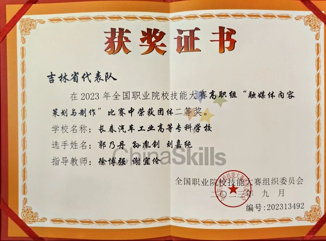 9月12日至14日,全国职业院校技能大赛高职组“融媒体内容策划与制作”赛项决赛在北京电子科技职业学院举办。由我校汽车营销学院教师徐博强、谢宜伦指导,学生郭乃丹、孙胤钊、刘嘉纯组成的参赛队伍在全国58支参赛队伍中表现优异,荣获该赛项全国二等奖。