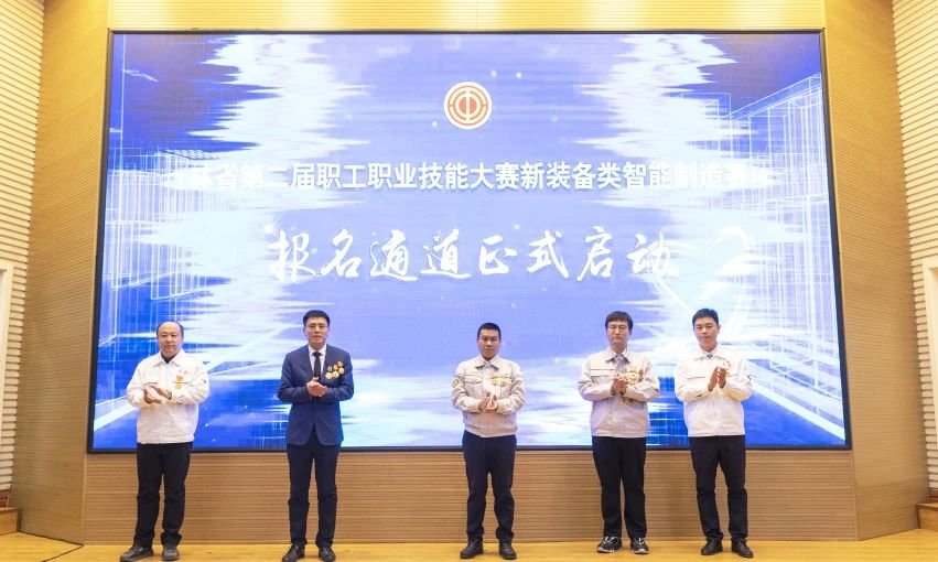 仪式上,大国工匠代表、我校优秀校友齐嵩宇、黄维祥、冯斌、金涛、杨永修共同开启省第二届职工职业技能大赛新装备类智能制造赛项报名通道。