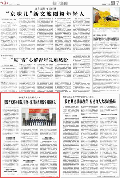 经过3年建设,已经形成“国家团队引领方向、省级团队助推发展、校级团队共同进步”的协作模式,实现了整体效能的显著提升。师生在国家级和省级竞赛中获奖20余项,团队入选吉林省高校黄大年式教师团队,团队负责人张军教授获评全国“黄炎培杰出教师奖”,孙雪梅荣获“吉林好人·最美教师暨黄大年式好老师”称号,多名教师成长为省级和校级名师、技术能手,“工匠之师”建设成效显著。