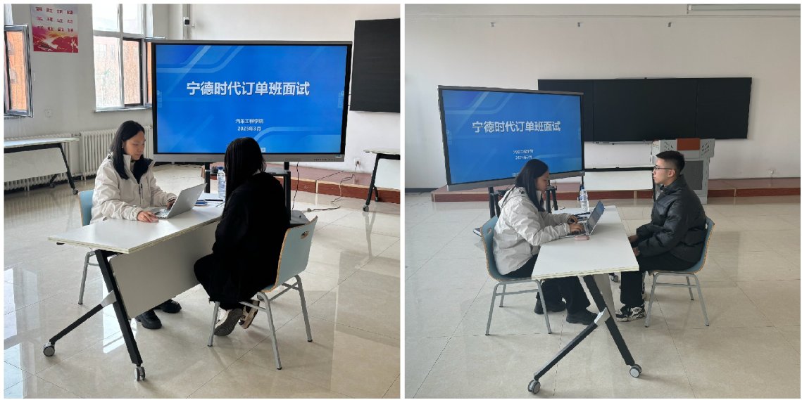在互动环节中,同学们积极踊跃提出问题,双方就订单班课程难度、就业后的晋升空间等问题展开交流。宣讲结束,宁德时代面试官对现场同学进行了一对一面试考核,进一步增进了企业与学生之间的双向了解。