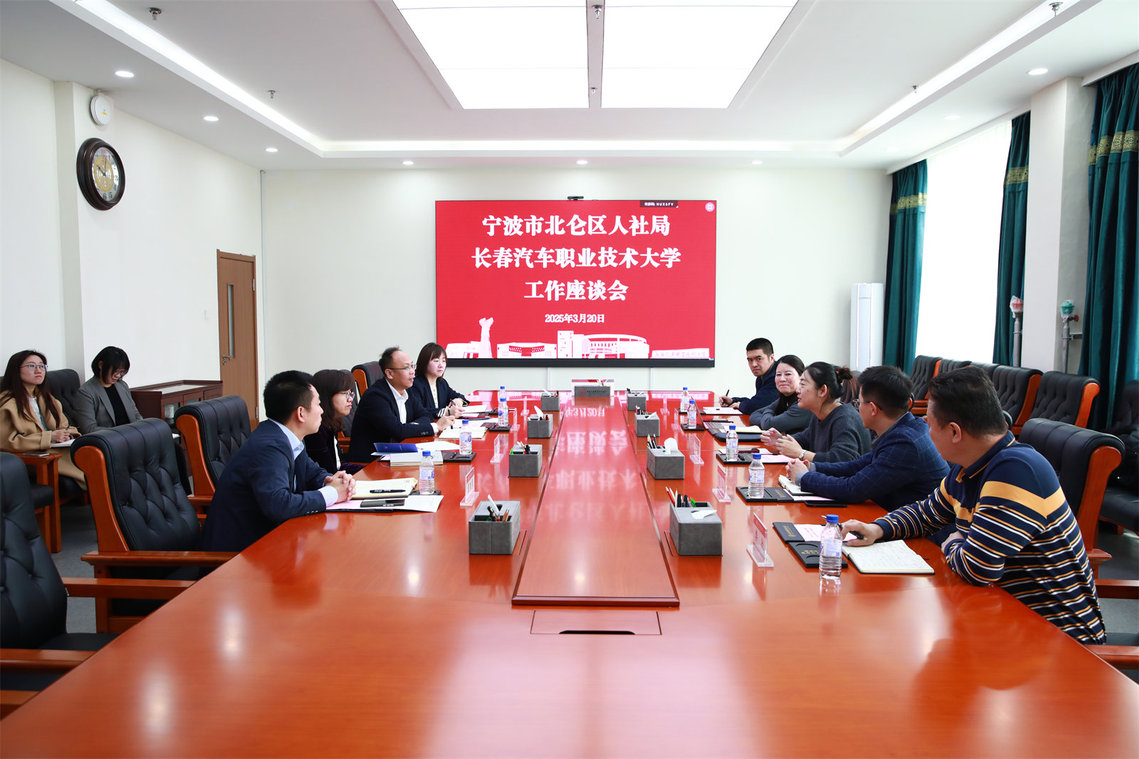 北仑区人力资源和社会保障信息中心副主任宋玲玲、利德智能产业人才研究院院长刘冬青等一行与我校党委副书记赵娜、学生处副处长张春雨及相关负责人开展座谈交流。会上,北仑区人社局授予我校“北仑产业人才学院联盟”成员单位称号。