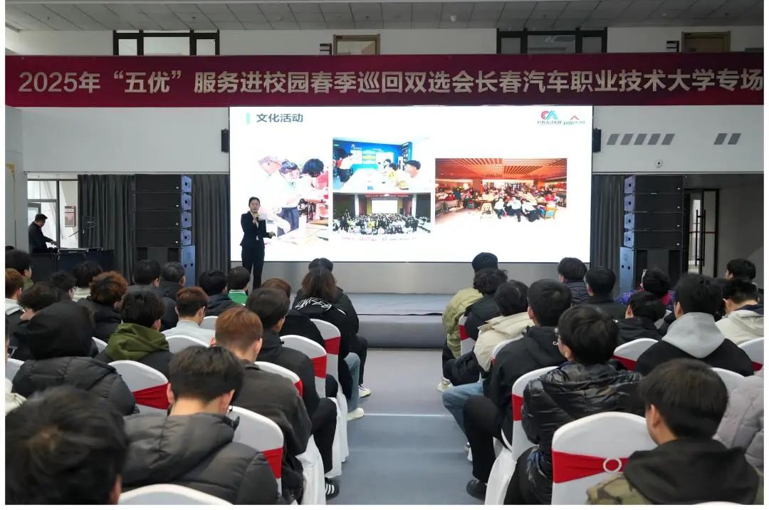 为深入贯彻落实教育部关于做好2025届高校毕业生就业创业工作的决策部署,积极响应 “春季促就业攻坚行动” 号召,进一步推动我校毕业生高质量充分就业,近日,由吉林省高等学校毕业生就业指导中心、长春市人才服务局主办,我校与汽开区就业服务局共同承办的“五优”服务进校园春季巡回双选会在学校红旗汽车品牌服务中心成功举办。
