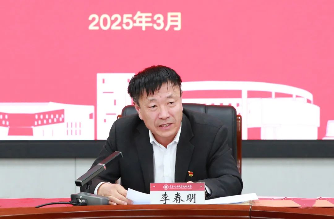 为全面贯彻党的二十大和二十届二中、三中全会精神以及全国两会精神,认真学习领会习近平总书记关于党的建设的重要思想,进一步贯彻落实习近平总书记在听取吉林省委和省政府工作汇报时的重要讲话精神,推动2025年党建工作重点任务高质量完成,3月28日,学校召开2025年党建工作会议。党委书记、校长李春明出席会议并作总结讲话,党委副书记赵娜主持会议。