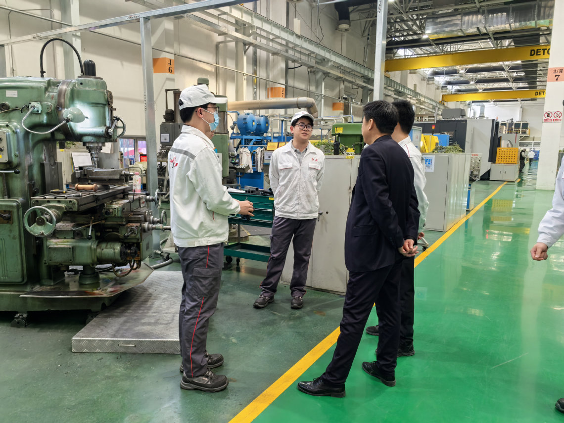 在调研期间,潘孝春与在研发总院工作的毕业生亲切交谈,重点询问了零件图识读、形位公差理解、工件加工等专业能力的应用情况,并征求他们对专业课程设置的建议。潘孝春表示,学校将紧密贴合企业发展,不断开发校企融合课程,确保学生实践技能与企业需求同频共振,为智能制造领域精准输送技术型、创造型、创新型人才。