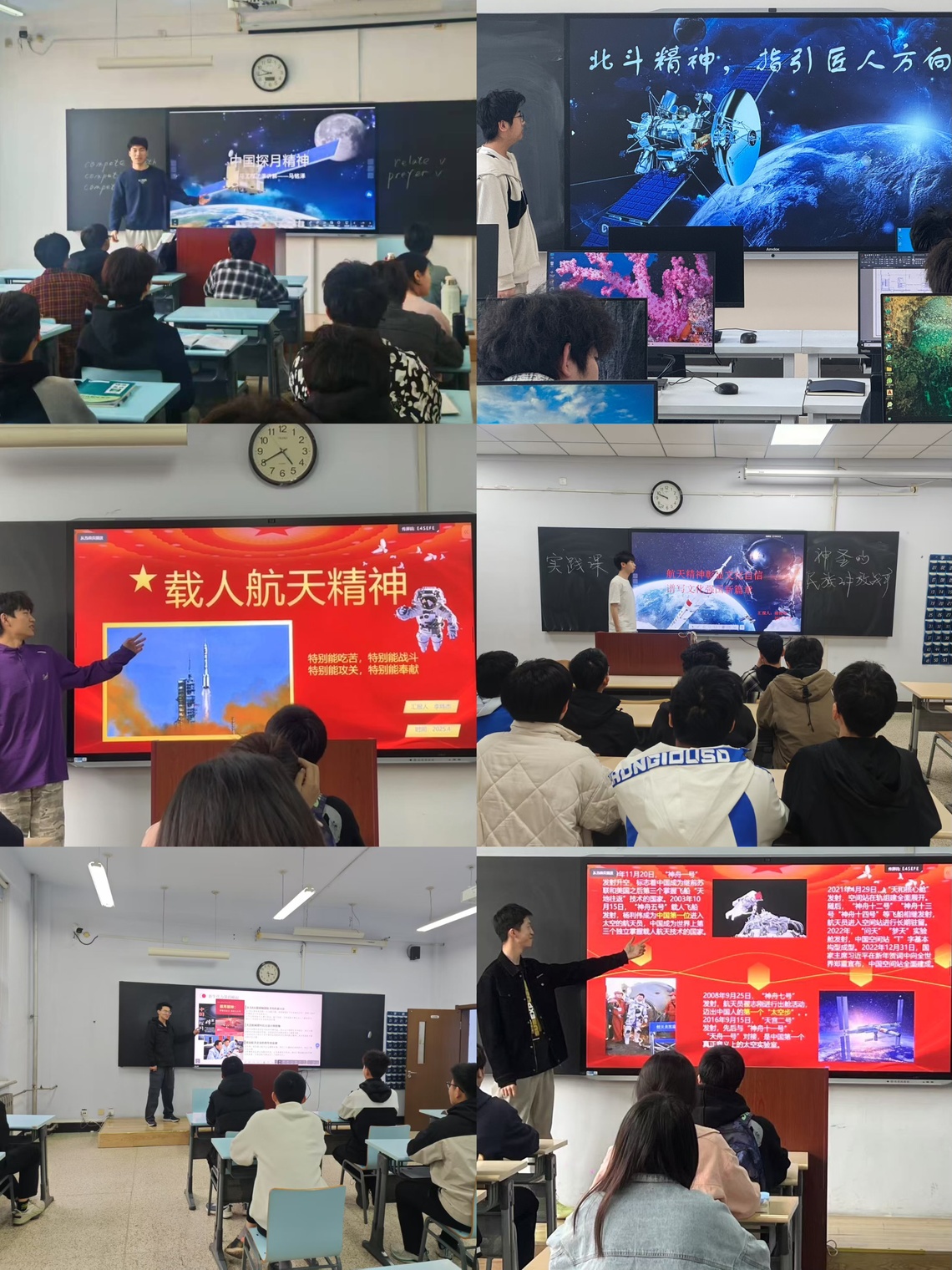在校园内,本科学部青马宣讲团围绕航天精神积极开展了多场宣讲。6名宣讲团成员系统梳理了中国航天发展脉络,用一个个生动的故事,深入浅出地阐释航天精神的内涵与时代价值。通过宣讲,同学们对航天精神有了更深刻的理解,纷纷表示要以航天人为榜样,努力学习,为实现中华民族伟大复兴的中国梦贡献自己的力量。