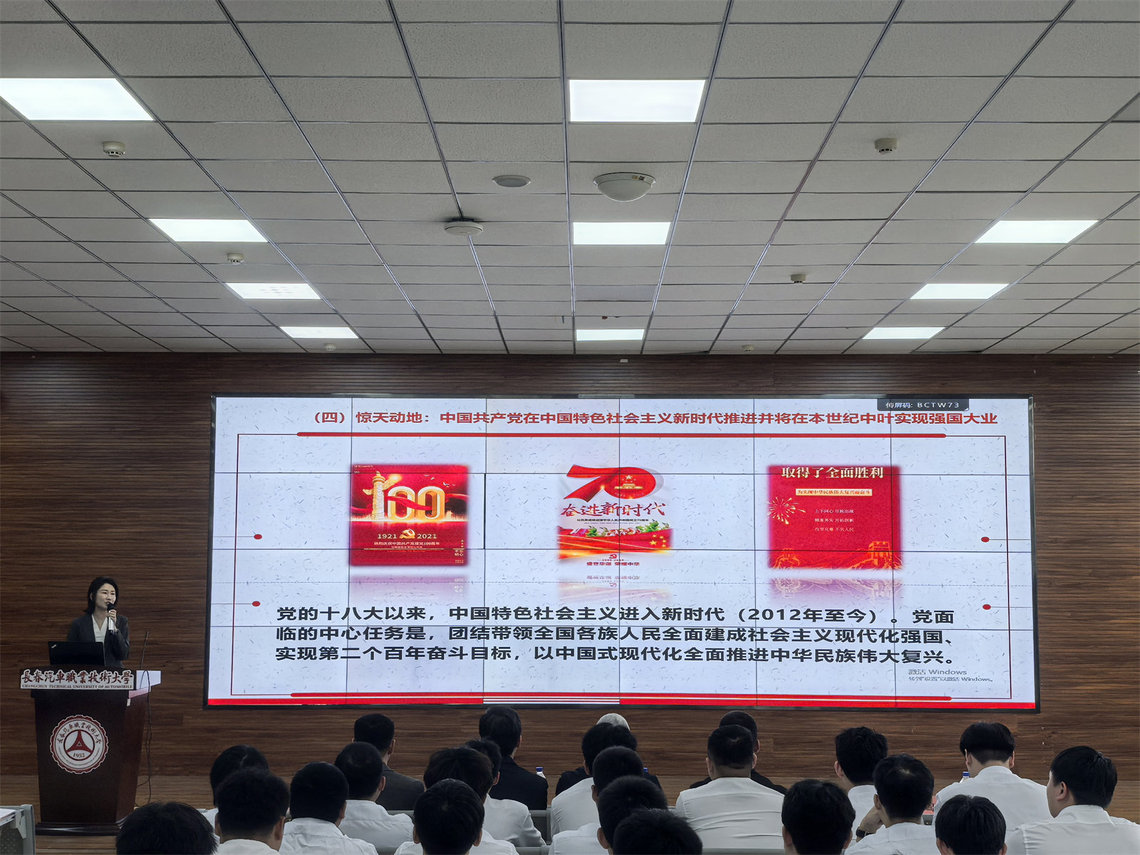在五四青年节“党建带团建·党员团员结对子”环节,王盼盼老师为现场的党员和团员们作了题为《接力民族复兴,担当强国大任》的专题讲座,讲述了近代以来中华民族波澜壮阔的奋斗征程,用鲜活案例解读民族复兴的时代内涵,激励青年学子勇担使命。