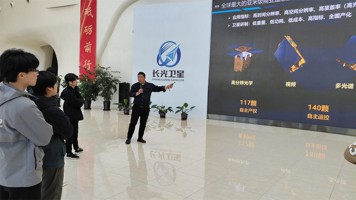 在基地讲解员的引导下,师生们依次参观了航天器模型展示厅、卫星总装测试车间及遥感数据应用中心。通过高分辨率遥感卫星“吉林一号”组网模型、火箭发射模拟演示等,学生们直观了解了卫星设计、制造、发射及应用的完整流程。大家纷纷表示,原来卫星不仅是“天上的眼睛”,更是未来智慧交通的“神经中枢”。