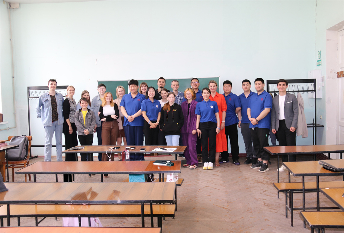研学团同学与2024年来我校交流的俄罗斯同学合影