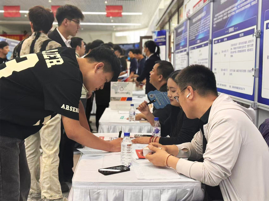 在校友企业专区,来自省内重点装备制造业领域的10家校友企业组团返校,不仅带来169个优质岗位,还为在校生传授职业发展经验,搭建起“校友反哺母校、校企深度合作”的长效机制。我校校友、长春市润威汽车销售服务有限公司负责人徐凤威表示:“母校培养的专业人才与企业需求高度契合,希望通过此次招聘吸纳更多优秀学弟学妹,共同为吉林振兴贡献力量。”