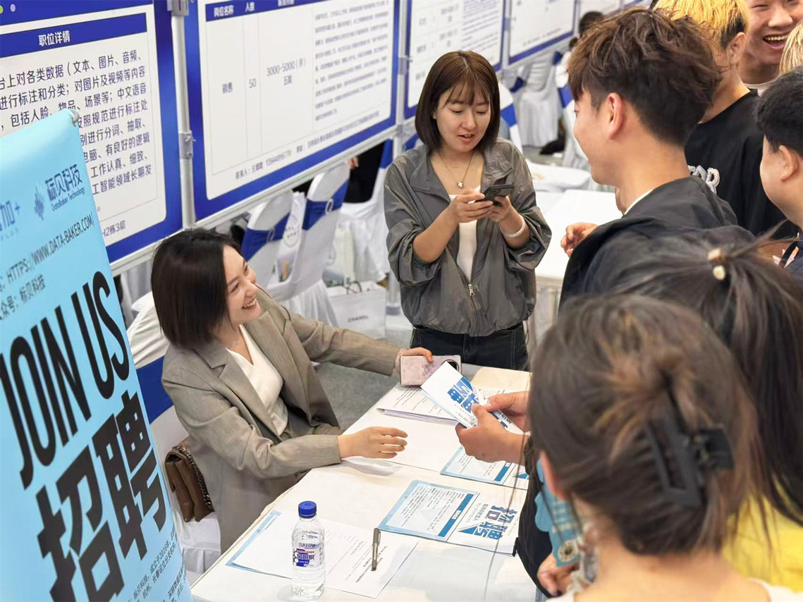 AI 赋能体验区利用大数据和AI技术,打造全流程智能化就业服务场景。学生可借助AI技术诊断并优化个人简历,通过定位分析,精准匹配岗位,打造“一岗一简历”的定制化求职方案;同时,学生还能通过自助查询岗位大数据系统,一键洞察行业动态、岗位分布、薪酬水平、技能需求及区域就业格局等全景信息。据统计,招聘会期间共有378名毕业生体验AI服务,系统累计优化简历83份。