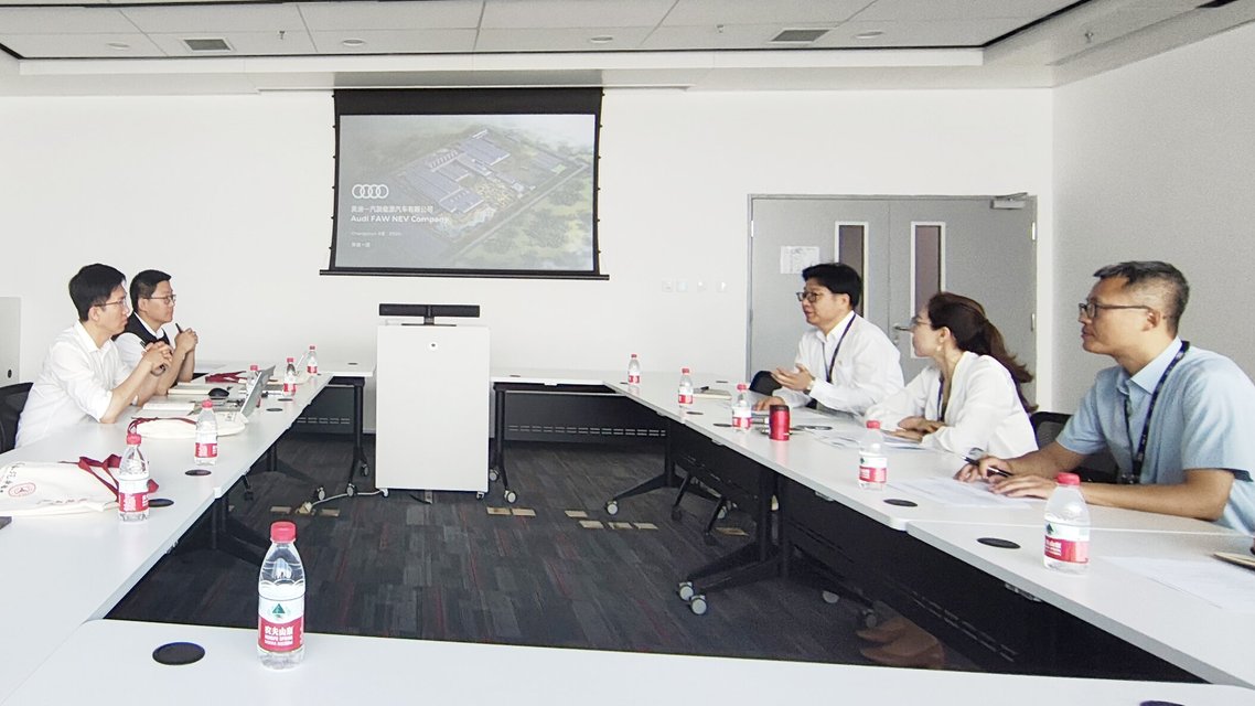 6月24日,由吉林省教育厅组织、我校作为汽车领域专产调研小组牵头单位,政校代表共同前往奥迪一汽新能源汽车有限公司开展专项调研。吉林省教育厅职成处副处长赵新雅、我校教务处副处长李起振、汽车工程学院院长李东兵及各学院代表一行深入企业,聚焦职业本科层次学生的培养质量与企业适配度、新能源汽车产业急需的关键岗位能力模型、校企协同开展应用型科研的可行路径三大核心议题开展调研交流。赵新雅表示,本次调研不仅要摸清企业人才需求“痛点”,更要找准职业教育人才培养“堵点”,最终构建“产业需求—专业设置—课程开发—人才输出”的闭环链条,为区域汽车产业升级提供“适销对路”的高素质技能人才。企业技能人才招聘负责人李超明确提出对智能制造、高压电安全技术、智能网联等复合技能本科人才的迫切需求,双方就课程优化、实训基地共建等达成共识。调研团还实地参观总装车间,为实训项目开发与科研课题收集一手资料。