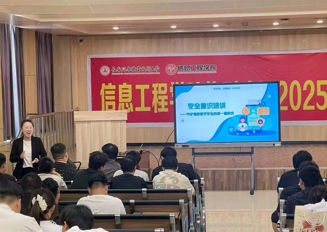 开展主题宣讲。图书信息中心联合信息学院、长春银迅科技有限公司,共同开展“网络安全宣传周”主题宣讲活动。活动现场,邀请网络安全讲师邱安然授课,结合实际案例深入浅出讲解网络安全知识,并为同学们答疑解惑。同学们积极参与互动,现场气氛热烈。活动后,设置线上答题问卷,师生踊跃参与,进一步巩固所学知识,切实筑牢网络安全“防火墙”。