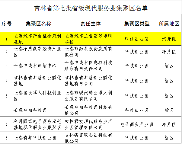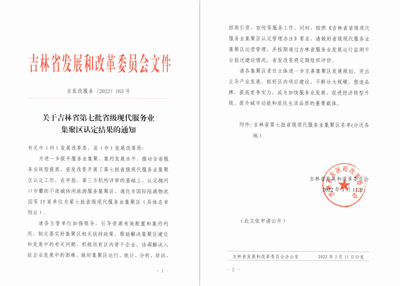 吉林省发展与改革委第七批现代服务业集聚区公示